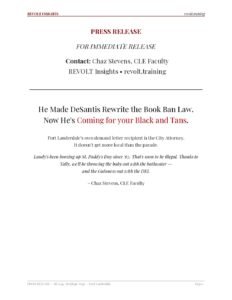 Excerpt: Press release announcing the Fort Lauderdale demand letter and 8-custodian omnibus PRR targeting the City’s support for the St. Patrick’s Day Parade, Las Olas Greek Festival, and Juneteenth programming. Frames the local angle for Sun Sentinel and South Florida media: Lauderdale has been funding, staffing, and promoting the St. Paddy’s parade since 1967. Quotes Stevens on the dragnet PRR, the certification trap, and the “economic development” defense that fails on the statute’s own terms.